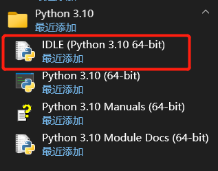 windows系统,开始菜单,Python下有个IDLE,IDLE 是 Python 自带的简易开发环境: