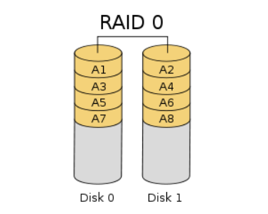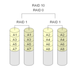 RAID10:先做镜像再作条带化,是对虚拟磁盘实现镜像