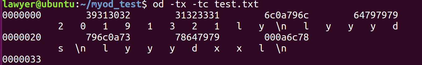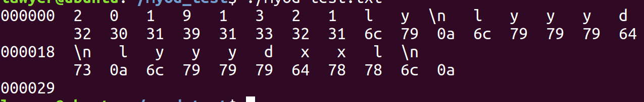 2.编写myod.c 用myod XXX实现Linux下od -tx -tc XXX的功能