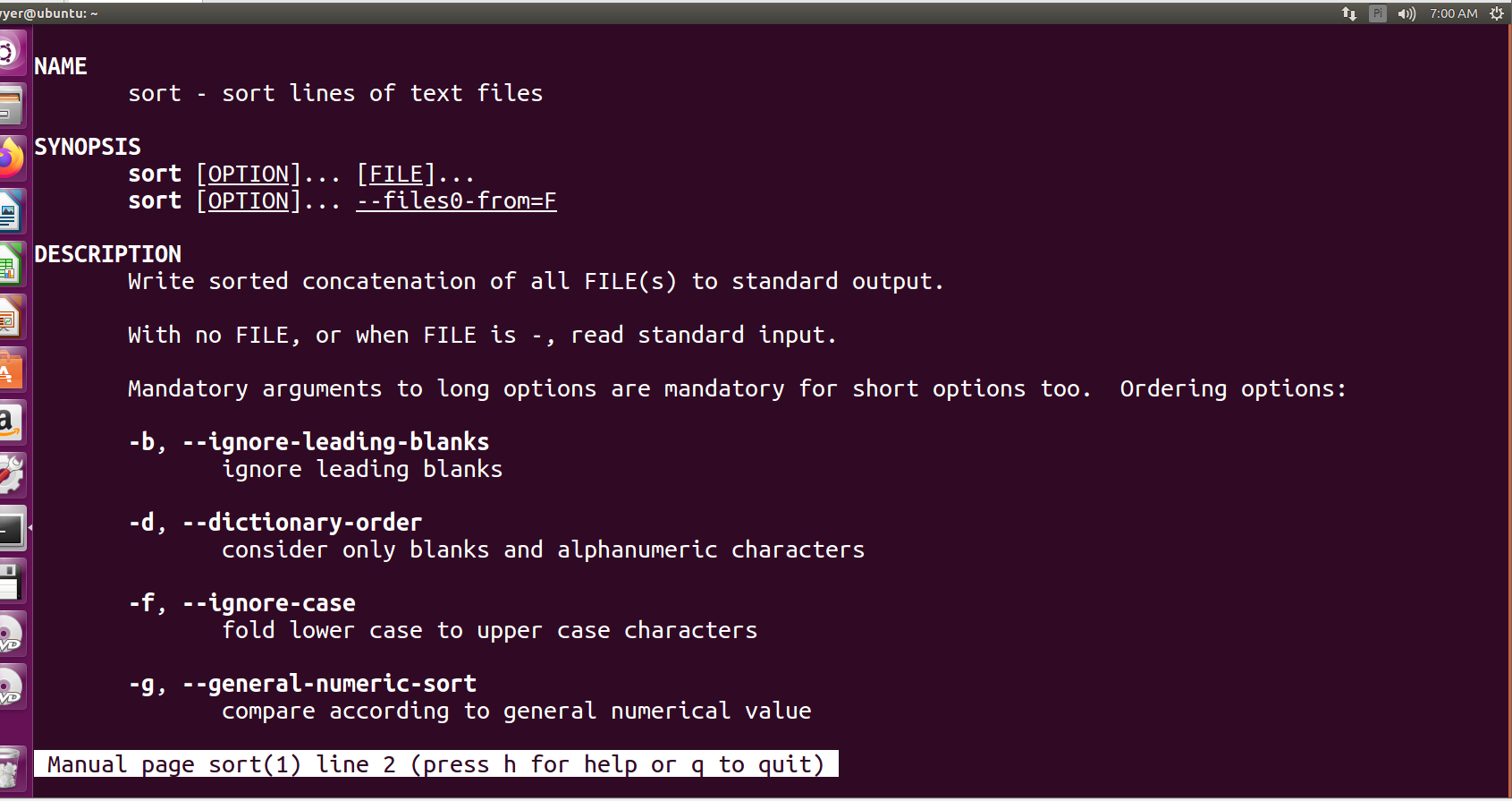 1. 用man sort 查看sort的帮助文档