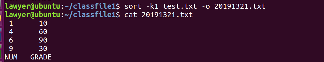 sort -k1 test.txt -o 20191321.txt 将第一域正排序后生成到新文本文件里: