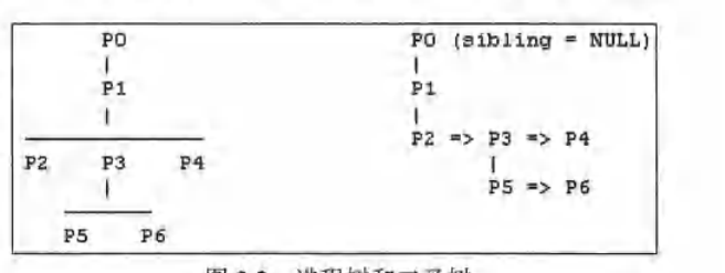 进程家族树通过个PROC结构中的一对子进程和兄弟进程指针以二叉树的形式实现