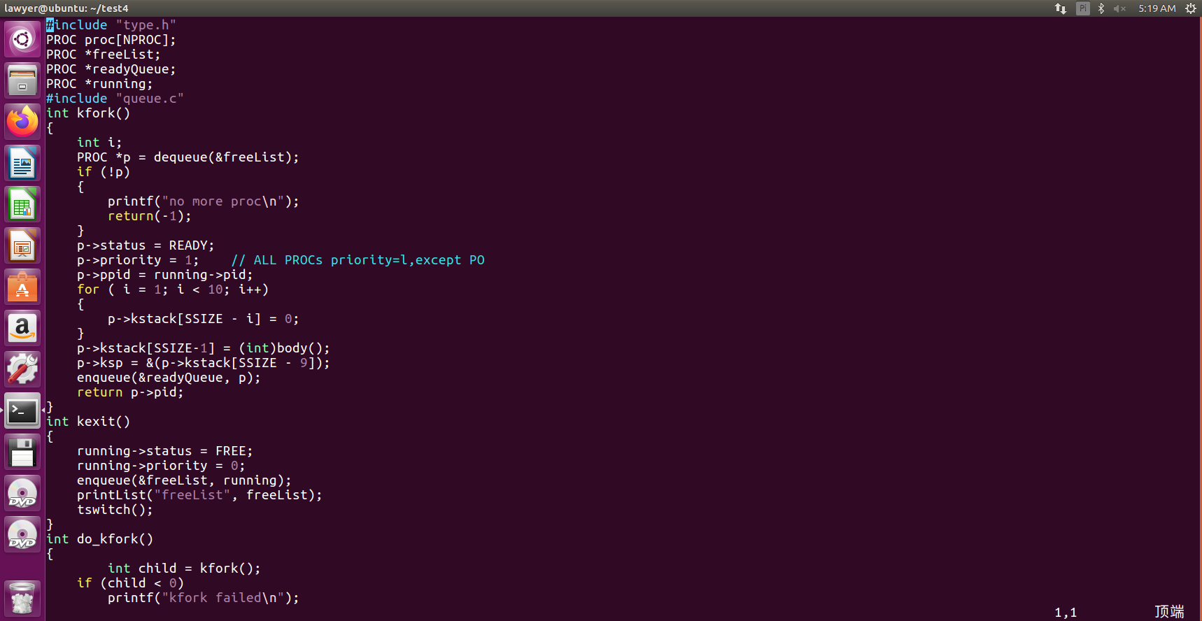 printf("proc %d in scheduler()\n"z running->pid); if (running->status == READY)