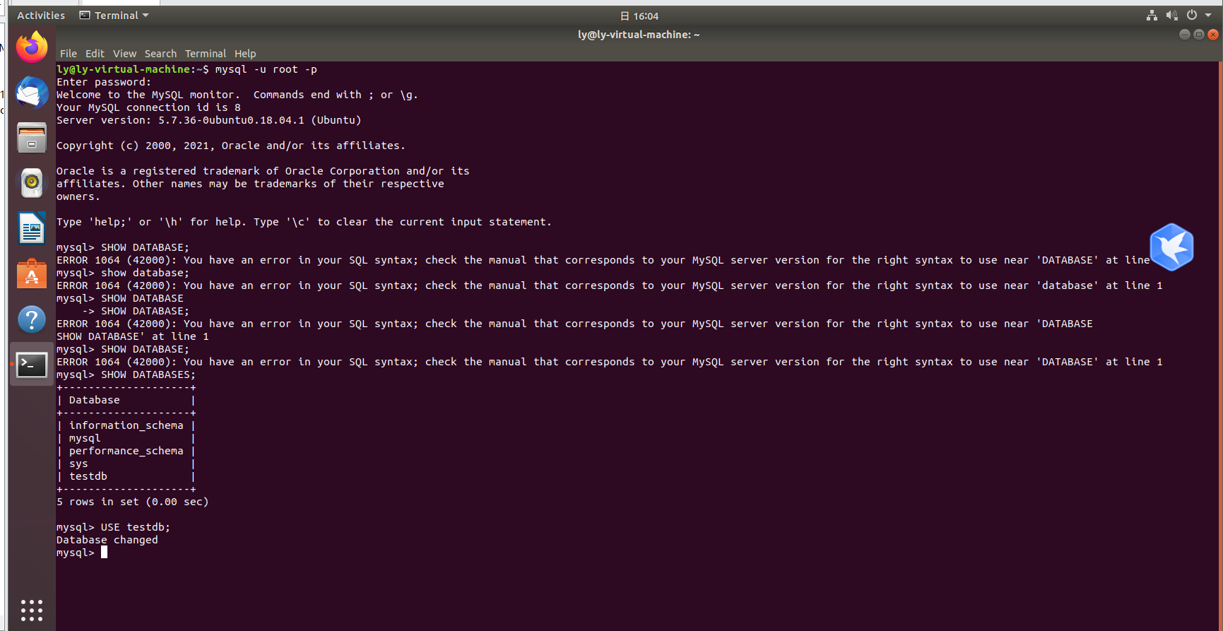 在实践显示数据库时,出现了语法错误的情况,仔细检查发现是DATABASES错了,需要保持复数形式