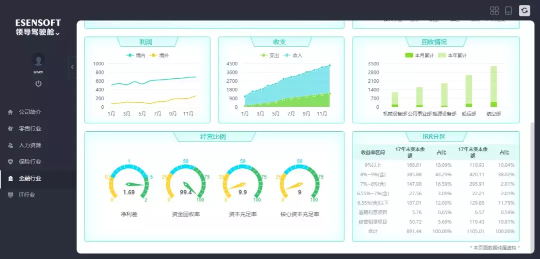 比如根据业务需求开发出高管层所需的公共通用的管理驾驶舱,从宏观上满足日常管理、经营分析、专项业务分析的需要。还有针对高管对所负责的整体业务、 KPI和数字(例如负债,利润,营收)结果进行查看