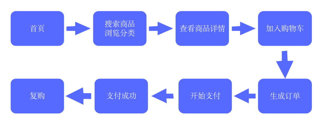 比如,对一些电商产品来说,最终目的是让用户下单并支付,但转化率取决于整个流程。这时,我们就可以通过漏斗模型一步一步地进行监测。如下图所示,我们可以监控用户在流程中各个层级上的行为路径,寻找每个层级的可优化点。对没有按照流程操作的用户绘制他们的转化路径,找到可提升用户体验,缩短路径的空间,最终提升整体转化率。