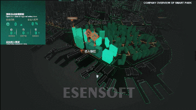 如图所示,整个平台从“园区企业”、“园区安全”、“园区能耗”、“园区交通”这四个维度的场景展现,借助地理信息技术、三维虚拟化等高科技手段,集地上地下、室内室外一体化的二三维模型为一体,将园区核心运行系统的各项关键数据进行综合展现。