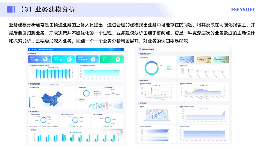 业务建模分析区别于前两点,它是一种更深层次的业务数据的主动设计和探索分析。需要更加深入业务,围绕一个一个业务分析场景展开,对业务的认知要足够深。