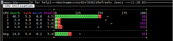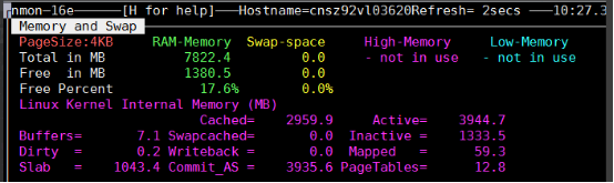 在上面的交互式窗口中,可以使用nmon 快捷键来显示不同的系统资源统计数据: