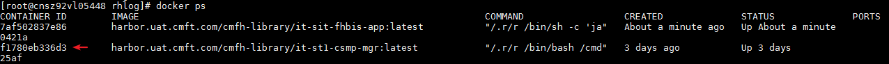 1、显示当前正在运行的容器,找到需要监控服务的containerId