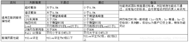 Web项目性能测试通过的通用标准(可参考):