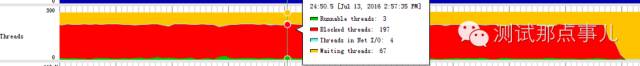 通过观察thread监控,发现50个线程并发时只有5个线程处于runnable状态,其余BLOCKED和waiting,加到线程数到200, runnable还是只有个位数运行,194个BLOCKED,如图。到这可以猜测代码有大量锁竞争