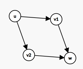 枚举点 \(u\)以及\(u\)指向的点 \(v\),以及\(v\)指向的点\(w\),累加上前面使得 \((u,w)\) 右边的 \(v\) 的个数即可。原理图如下: