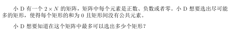 对于一个状态 \(dp_{i,j}\) 来说我们设 \(lstA[i]\) 表示最大的 \(k\) 使得第一行 \([k+1,i]\) 中存在一个和为 \(0\) 的矩形,\(lstB[i]\) 同理为考虑第二行的。\(lstC[i]\) 同理表示同时考虑两行的大矩形。