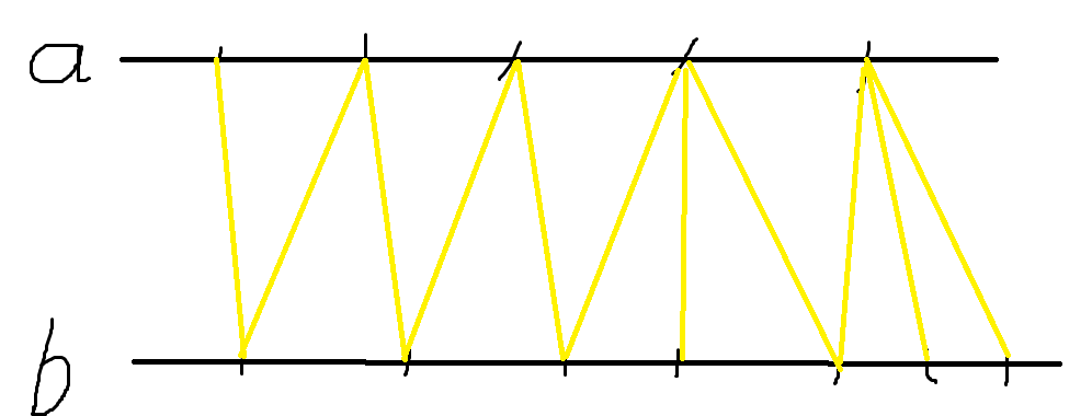 转移的时候要比较 \(lstA\) 与 \(lstB\) 而不能是 \(i,j\),否则当一边已经无路可走即 \(lst=-1\) 的时候会错,给一个 hack: