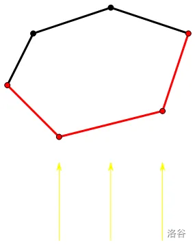 若 \(x<k\),则 \(p\) 太小,应该减小(及增大斜率 \(-p\))。