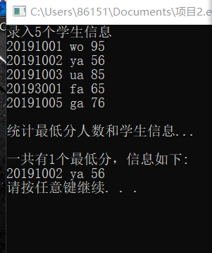 printf("\n统计最低分人数和学生信息...\n");