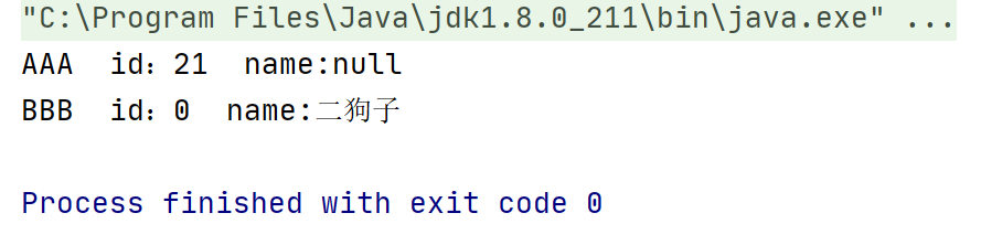int id; String name; public void setId(int id) { this.id = id; } public void setName(String name) { this.name = name; } } class Test{ public static void main(String[] args) { Antts.AAA.setId(21); System.out.println(Antts.AAA+" id:"+Antts.AAA.id+" name:"+Antts.AAA.name); Antts.BBB.setName("二狗子"); System.out.println(Antts.BBB+" id:"+Antts.BBB.id+" name:"+Antts.BBB.name); } }