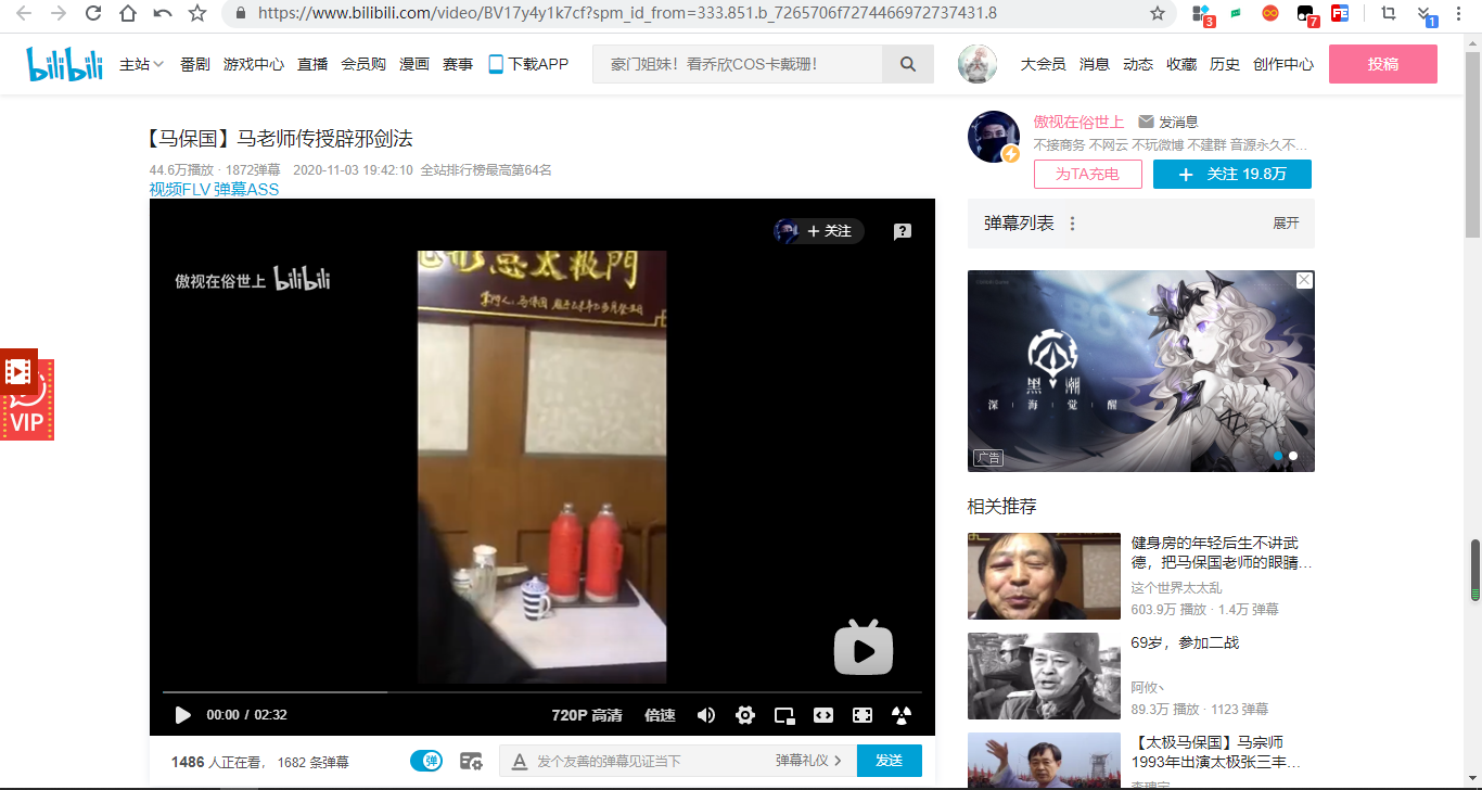 再运行一下单个视频(以混元太极掌门人马老师为例):