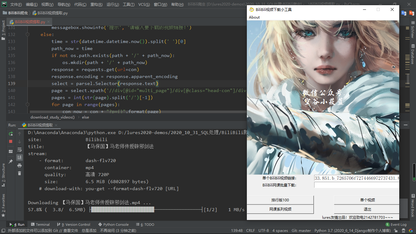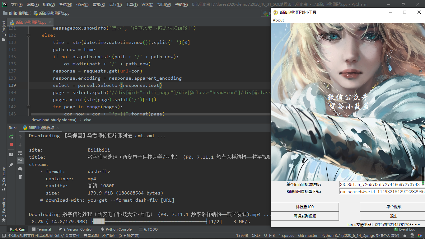 上周末,大概花了两个半天的时间制作了一个BiliBili视频下载小工具,这不,下周二考试,孩子不就能用上了!