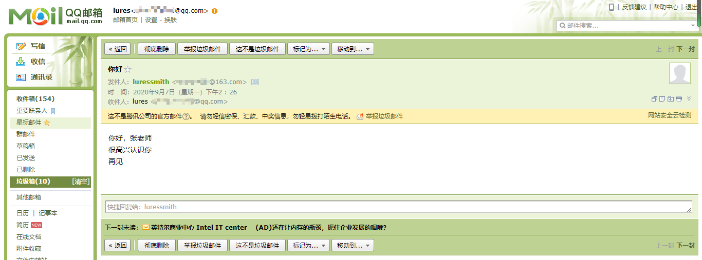 用的是163的邮箱发送的邮件!但是现在还有点小问题——发送给QQ邮箱的邮件自动被归档为垃圾邮件,大佬解决了记得跟我说下!@大佬们