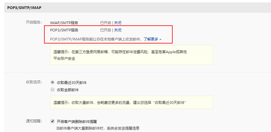 点击POP3/SMTP/IMAP