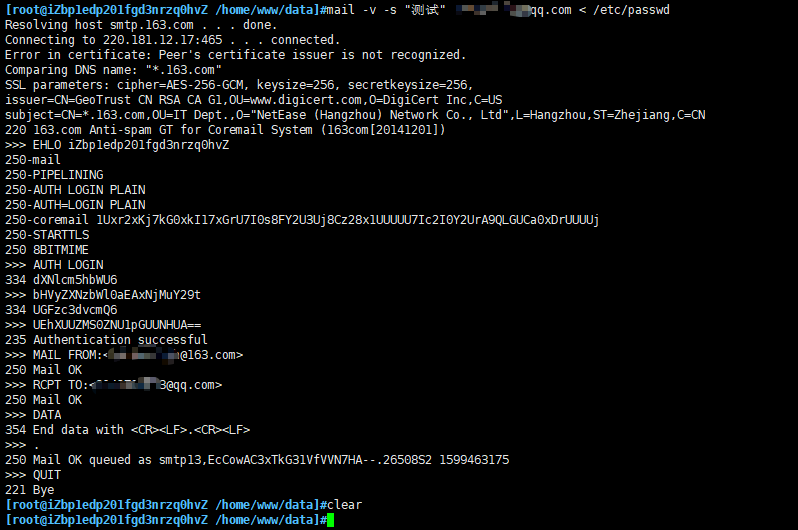 mail -v -s "测试" XXX@qq.com < /etc/passwd
