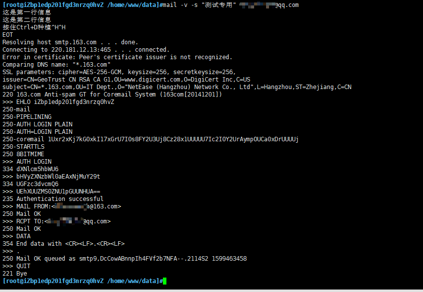 mail -v -s "测试专用" XXX@qq.com