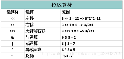 5、位运算符:(&、|、^、~、>>、<<、>>>)