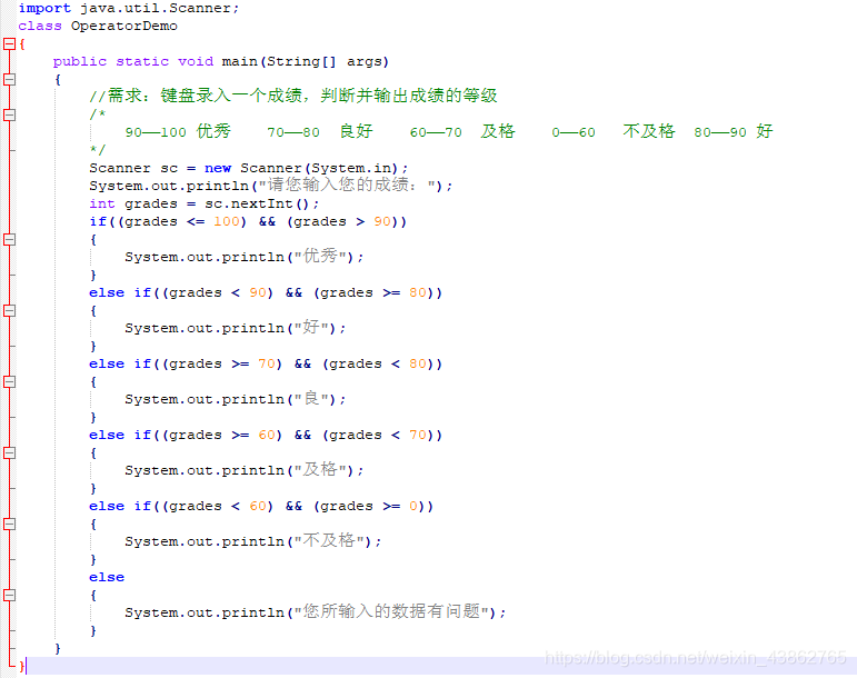 If(关系表达式1){语句体1}else if(关系表达式2){语句体2}……else{语句体n+1;}