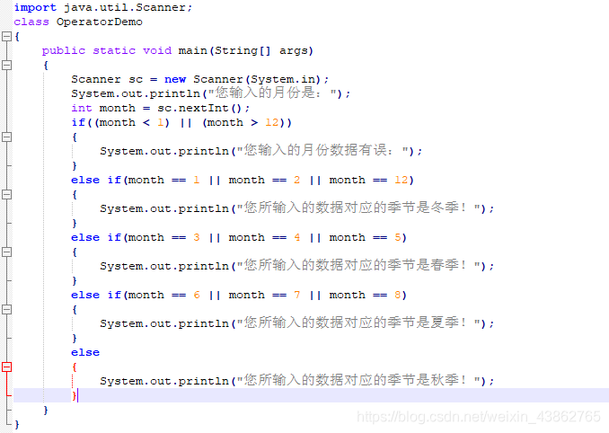 - 键盘录入月份的值,输出季节: