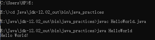 - 在命令行模式下输入cd Java\jdk-12.02_out\bin\java_practices