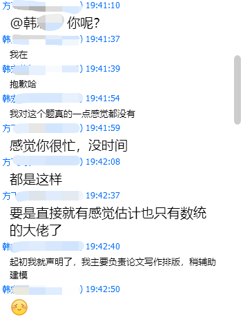 到了后面,我处理好第二问后,第三问我也不准备弄了,两个人只打嘴炮,我一个人干,我也消极了,后面群消息也没怎么看,只知道另一个学长也生气了~~~(负责论文的)