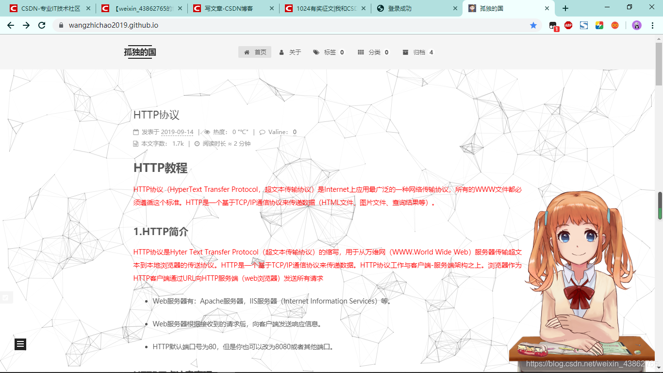 这一段时间,我都写了一些Verilog、Ubuntu、Linux shell,安装Anaconda之后开始使用Jupyter notebook并在此阶段开始看了Markdown语法,电脑由于性能不太好,在这一阶段出现大量的bug,哦,对,我最幸福的是安装了谷歌访问助手和可以访问外网,之后又接触了油猴等好用插件,装上了有用的脚本,可以全网免费看/下载视频和听/下载音乐,百度文库文章下载等等,对了,超星等课程也用小脚本开始刷课,节省了我大量的时间,在看了学长东东的博客之后,我的谷歌用bing浏览器内核,样式很美观,心旷神怡,最重要的是屏蔽广告插件加上谷歌算法的优越性,我现在解决自己遇到的问题越来越顺心,即使暑假后期电脑出现大量bug,向开始的我C盘文件删了一些导致.dll文件缺失,我找了好多方法,最后解决了,还有就是电脑是win10的系统,所以自动修复失败后,我bios,安全模式,wepe等在不损坏文件的前提下我都试了,虽然最后结果依旧是我熬夜到凌晨四点重装好系统并且设置好自己的还原点,关闭自动修复和自动更新等等,我对电脑更加熟悉了。正则表达式也是在这一阶段了解的,还有Python二级也在仓促的准备下考完了。还有用github搭建了自己的个人博客:https://wangzhichao2019.github.io并用Markdown语法写了几篇文章: