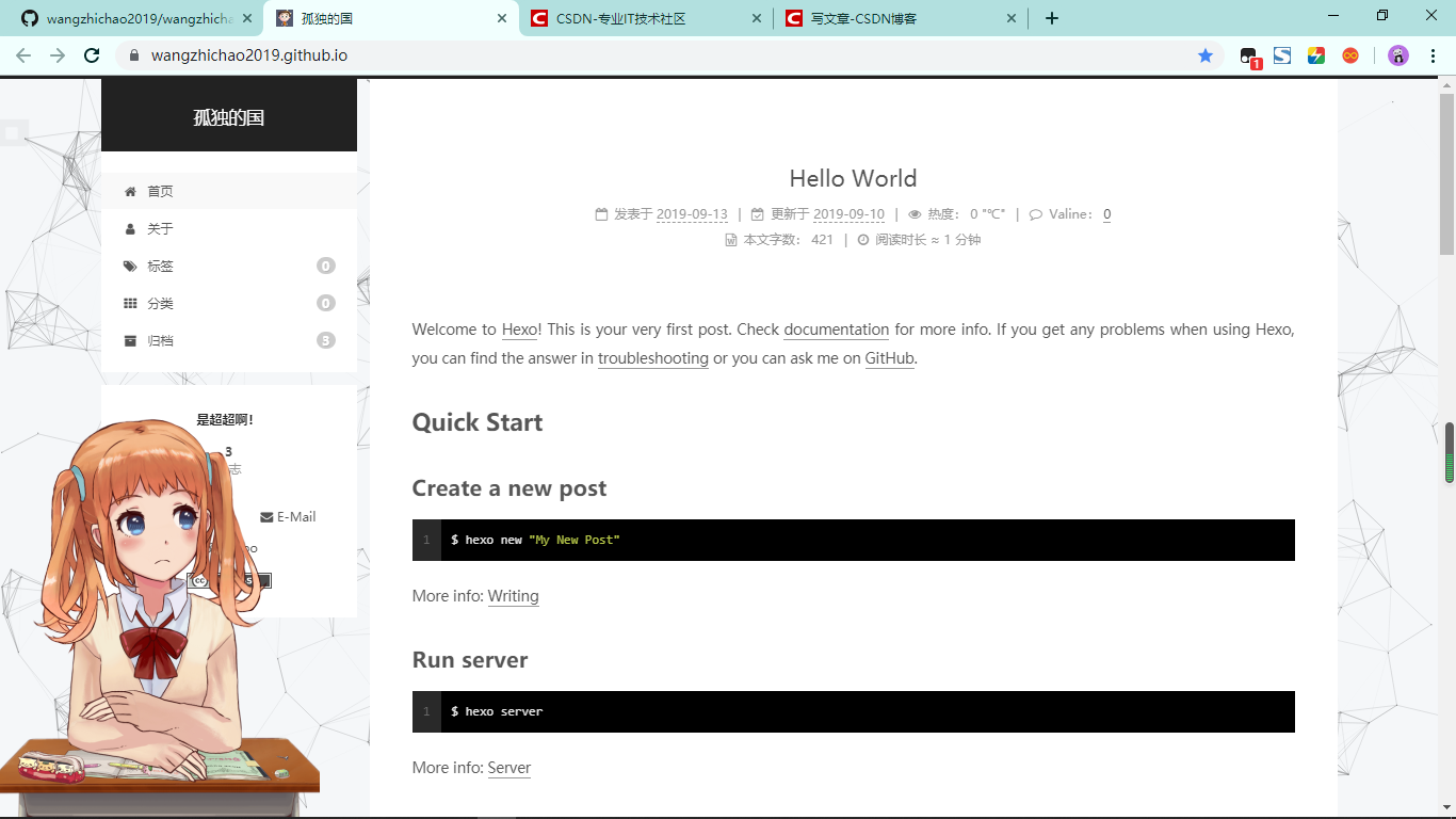 域名是:wangzhichao2019.github.io