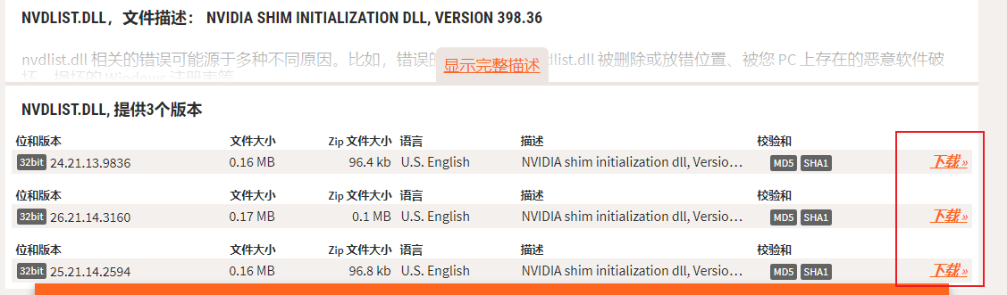 这个网站下可以下载破损的.dll文件(很全),于是我就下载了然后解压到相应的目录下:C:\Windows\System32\DriverStore\FileRepository\nvhm.inf_amd64_9172c4e962e5b3ee