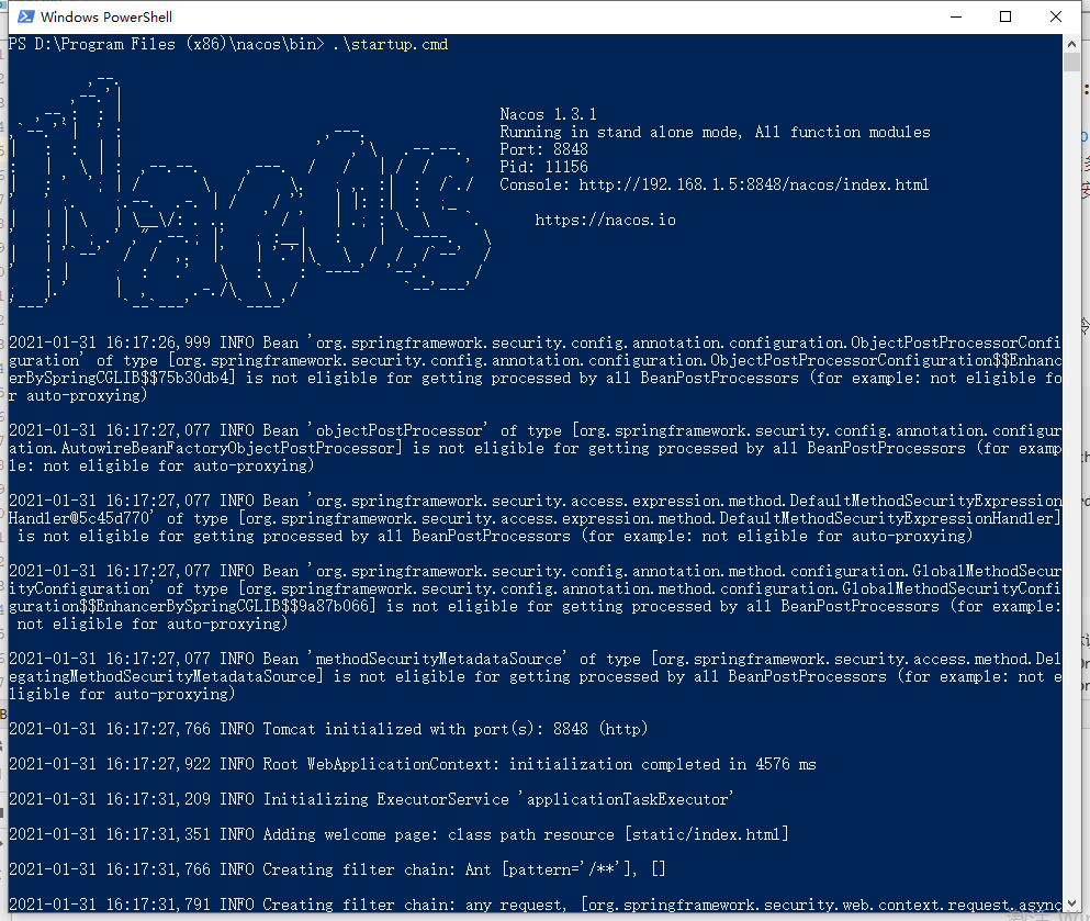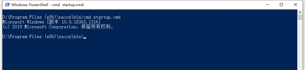 cmd startup.cmd或者.\startup.cmd,出现以下界面表示启动成功