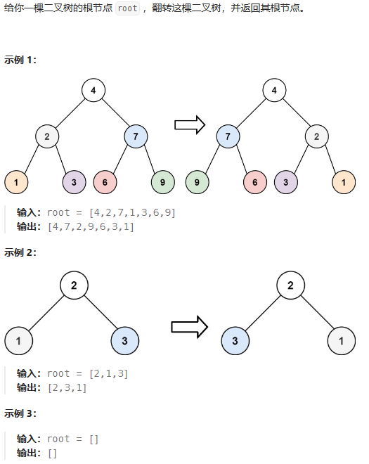 - 给你一棵二叉树的根节点 root ,翻转这棵二叉树,并返回其根节点。