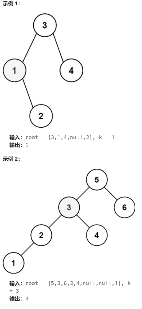 - 给定一个二叉搜索树的根节点 root ,和一个整数 k ,请你设计一个算法查找其中第 k 小的元素(从 1 开始计数)。