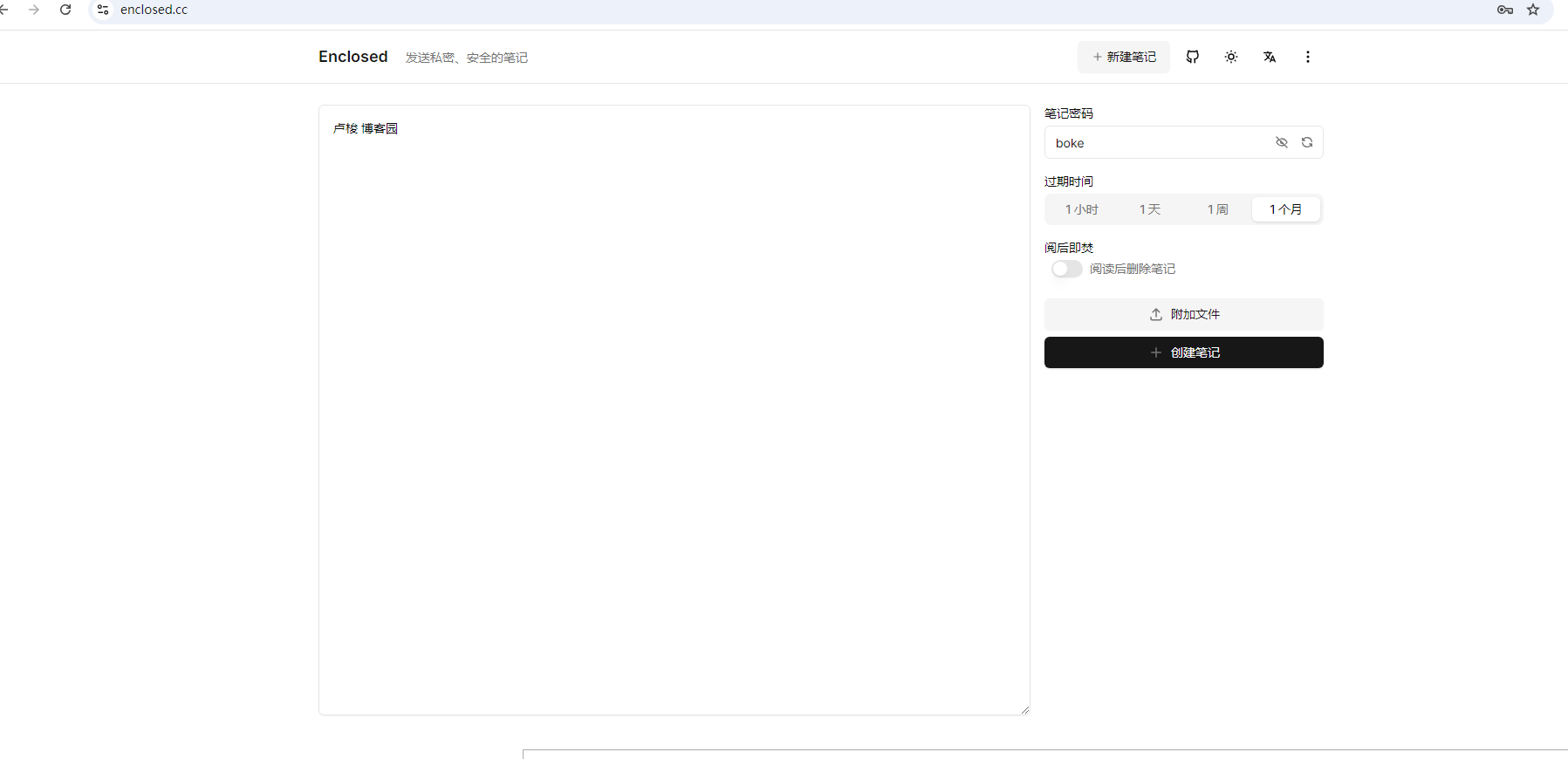 创建笔记时,您需要输入内容,还可以选择设置密码。此步骤完全在客户端执行,这意味着您的数据绝不会以未加密的形式离开您的设备。