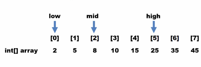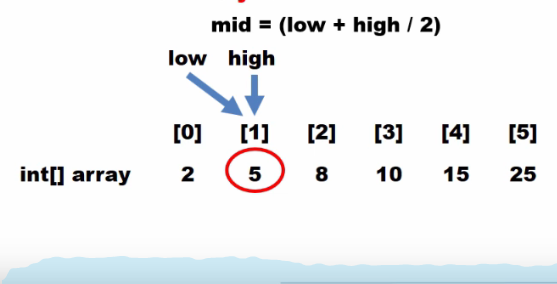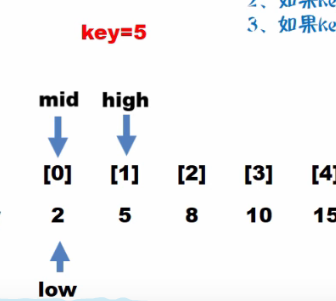 mid = 8 > 5,吧high移到【mid-1】的位置 high = 【1】