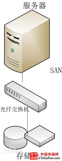 存储区域网络,从名字上我们也可以看出,这个是通过光纤通道交换机连接存储阵列和服务器主机,最后成为一个专用的存储网络。SAN经过十多年历史的发展,已经相当成熟,成为业界的事实标准(但各个厂商的光纤交换技术不完全相同,其服务器和SAN存储有兼容性的要求)。
