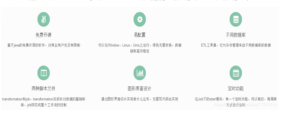 Kettle是一款国外开源的ETL工具,纯java编写,可以在Windows、Linux、Unix上运行,数据抽取高效稳定。