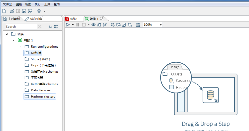 SPOON 允许你通过图形界面来设计ETL转换过程(Transformation)。