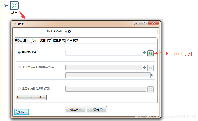 点开装换,可以设置需要执行的转换任务,比如可以执行上面我们做的转换,XXX.ktr