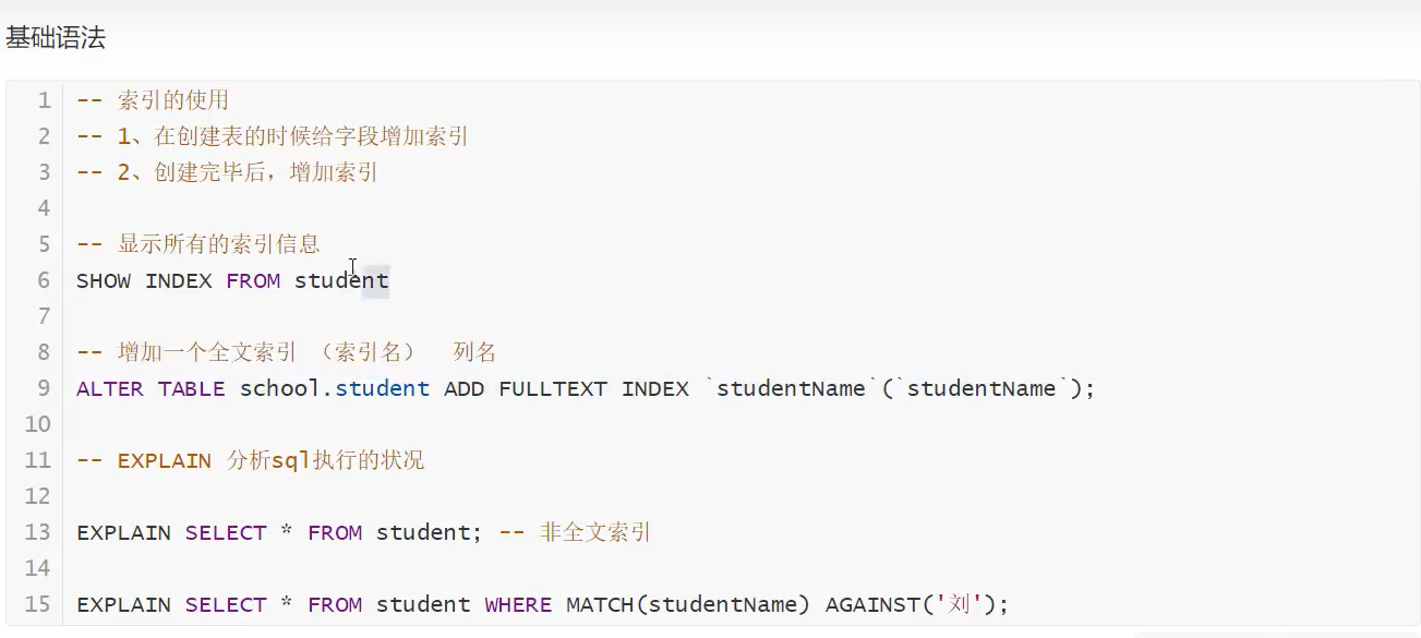 SHOW CREATE DATABASE school -- 查看创建数据库的语句