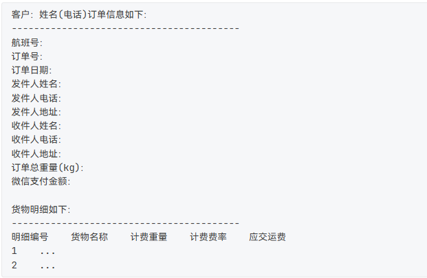 客户填写货运订单并进行支付,需要提供如下信息: