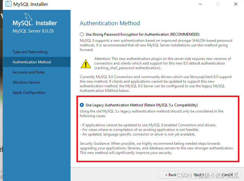 第一个是强密码校验,mysql推荐使用最新的数据库和相关客户端,MySQL8换了加密插件,所以如果选第一种方式,很可能你的navicat等客户端连不上mysql8。