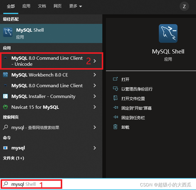 1.按下图操作从开始菜单中打开刚刚安装的mysql命令行客户端