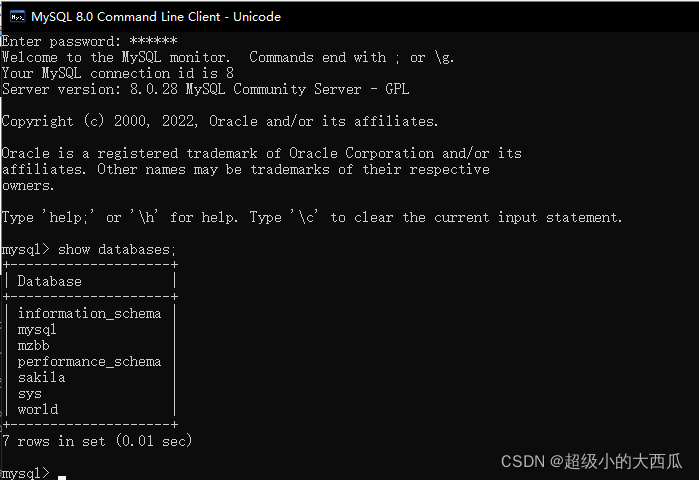 这个命令后面一定要加分号(;),表示sql语句结束。这个命令用于表示显示默认安装的数据库,如下图显示安装成功。